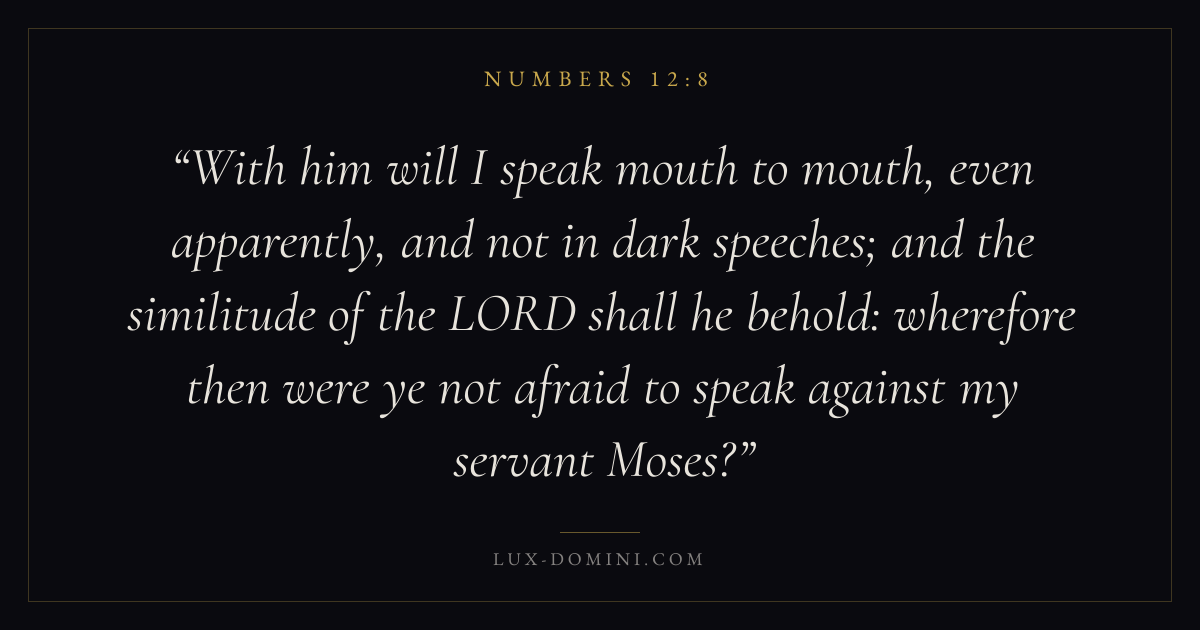 With him will I speak mouth to mouth, even apparently, and not in dark speeches; and the similitude of the LORD shall he behold: wherefore then were ye not afraid to speak against my servant Moses?