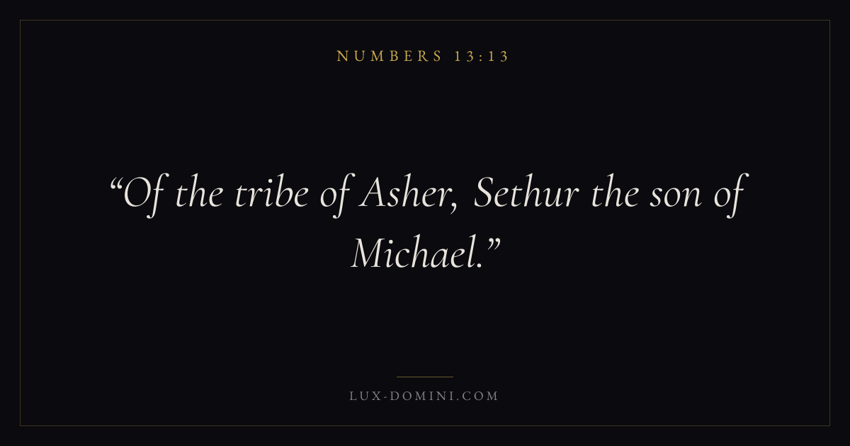 Hidden, one of the spies sent to search the Promised Land. He was of the tribe of Asher ( Num. 13:13 ).