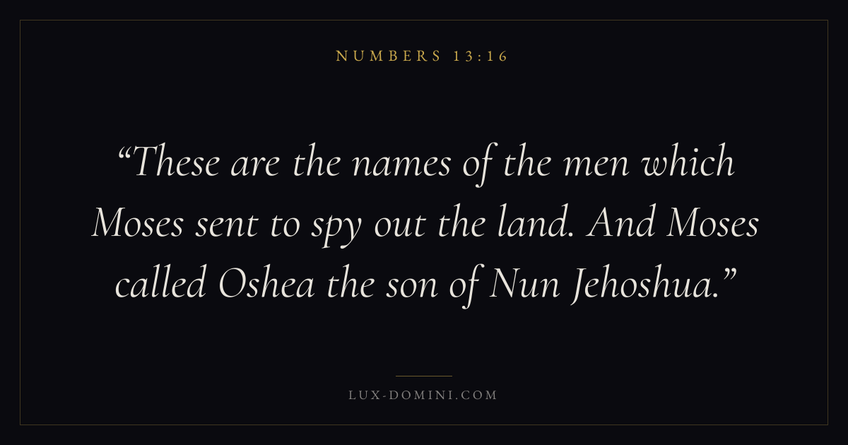 These are the names of the men which Moses sent to spy out the land. And Moses called Oshea the son of Nun Jehoshua.