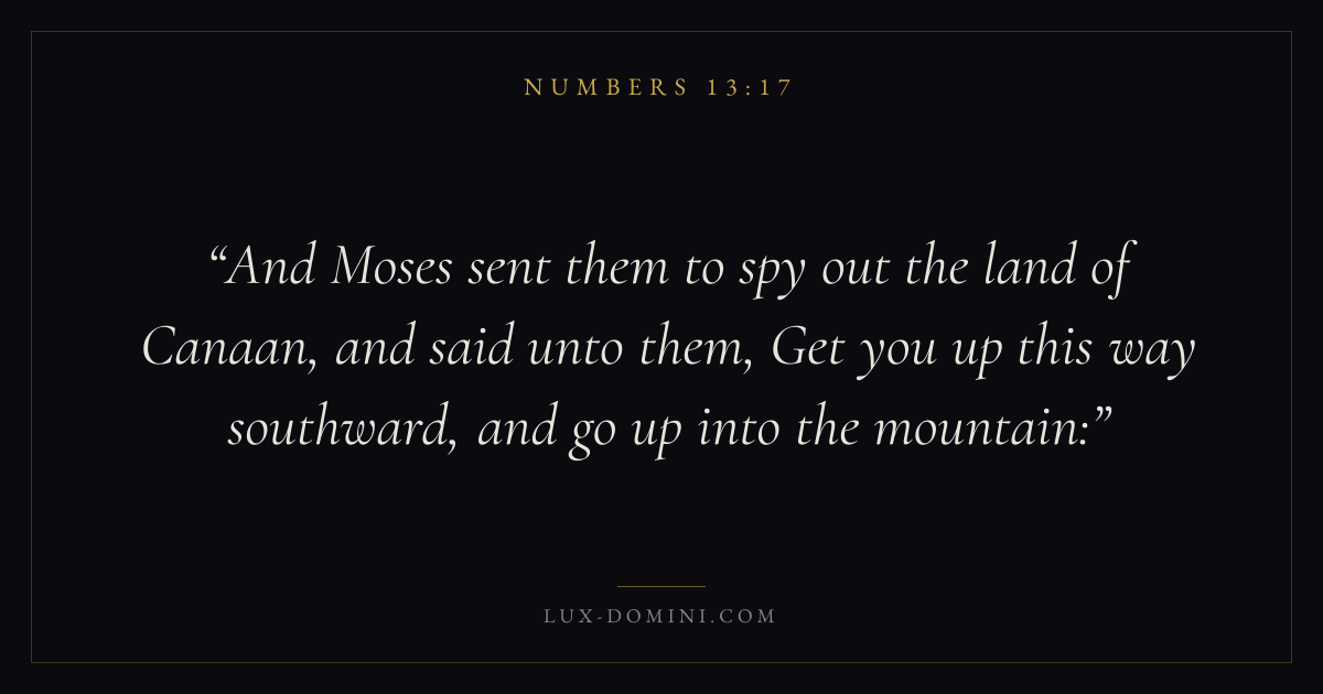 And Moses sent them to spy out the land of Canaan, and said unto them, Get you up this way southward, and go up into the mountain:
