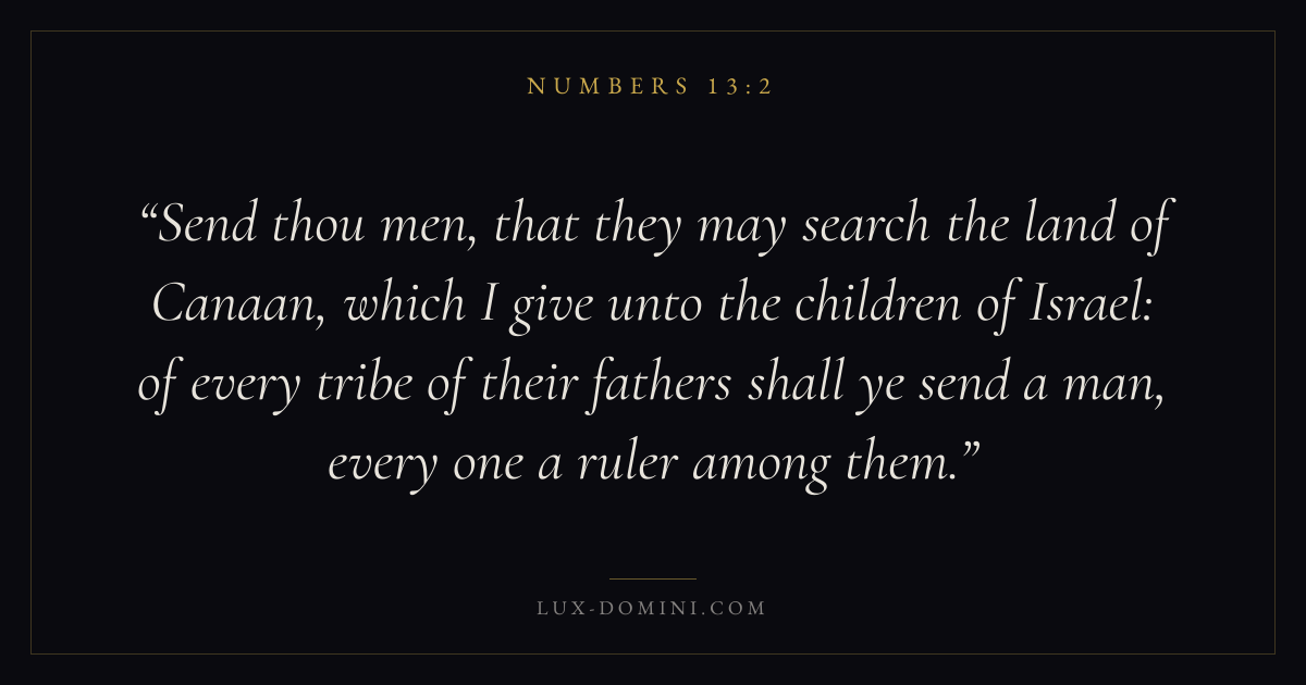 Send thou men, that they may search the land of Canaan, which I give unto the children of Israel: of every tribe of their fathers shall ye send a man, every one a ruler among them.