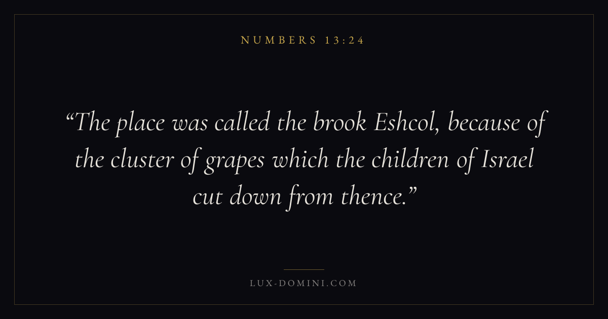 The place was called the brook Eshcol, because of the cluster of grapes which the children of Israel cut down from thence.