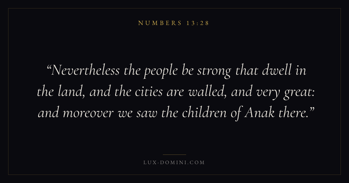 Nevertheless the people be strong that dwell in the land, and the cities are walled, and very great: and moreover we saw the children of Anak there.
