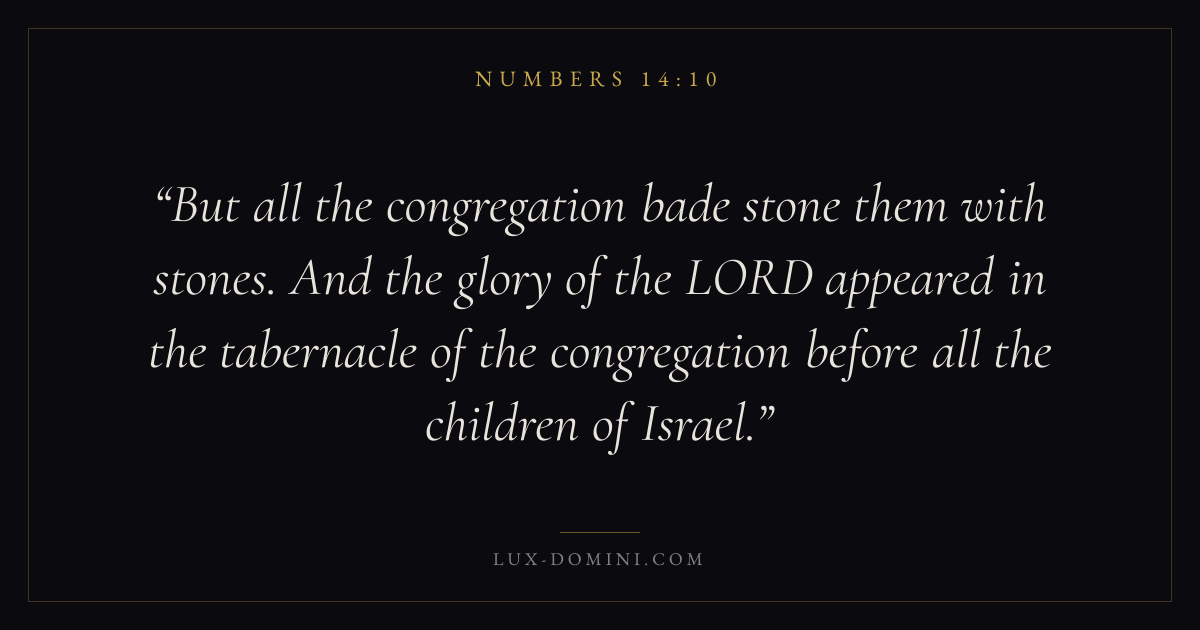 But all the congregation bade stone them with stones. And the glory of the LORD appeared in the tabernacle of the congregation before all the children of Israel.