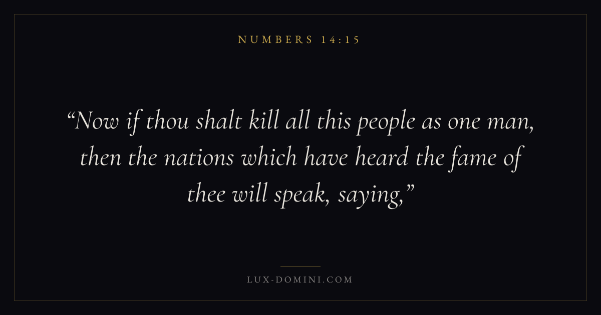 Now if thou shalt kill all this people as one man, then the nations which have heard the fame of thee will speak, saying,