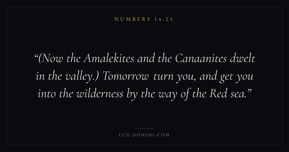 (Now the Amalekites and the Canaanites dwelt in the valley.) Tomorrow turn you, and get you into the wilderness by the way of the Red sea.
