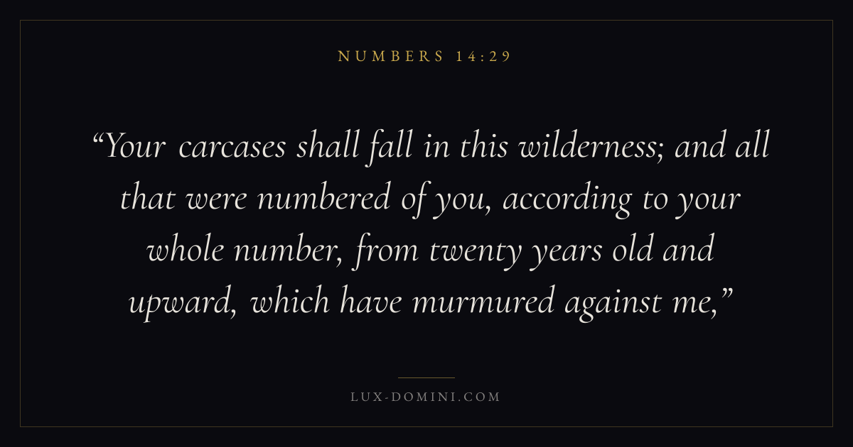 Your carcases shall fall in this wilderness; and all that were numbered of you, according to your whole number, from twenty years old and upward, which have murmured against me,