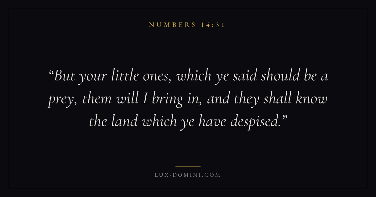 But your little ones, which ye said should be a prey, them will I bring in, and they shall know the land which ye have despised.
