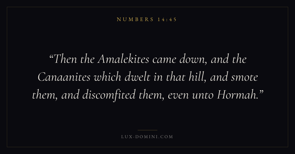 Then the Amalekites came down, and the Canaanites which dwelt in that hill, and smote them, and discomfited them, even unto Hormah.