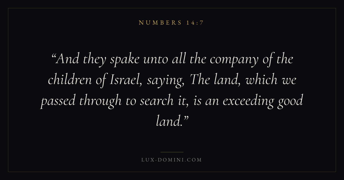 And they spake unto all the company of the children of Israel, saying, The land, which we passed through to search it, is an exceeding good land.