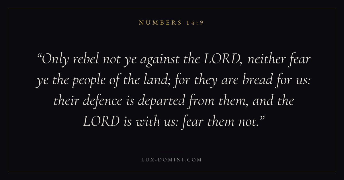 Only rebel not ye against the LORD, neither fear ye the people of the land; for they are bread for us: their defence is departed from them, and the LORD is with us: fear them not.