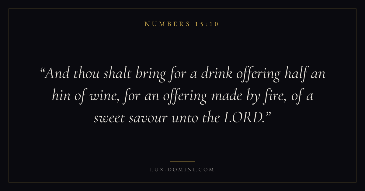 And thou shalt bring for a drink offering half an hin of wine, for an offering made by fire, of a sweet savour unto the LORD.
