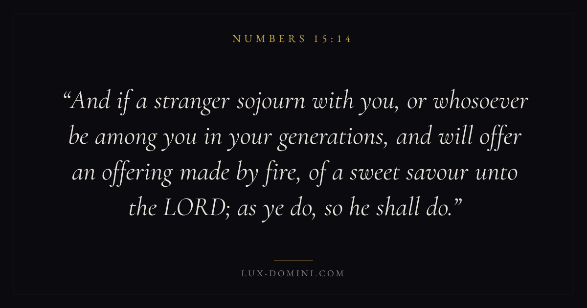 And if a stranger sojourn with you, or whosoever be among you in your generations, and will offer an offering made by fire, of a sweet savour unto the LORD; as ye do, so he shall do.