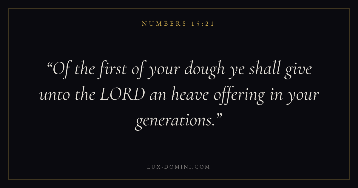 Of the first of your dough ye shall give unto the LORD an heave offering in your generations.