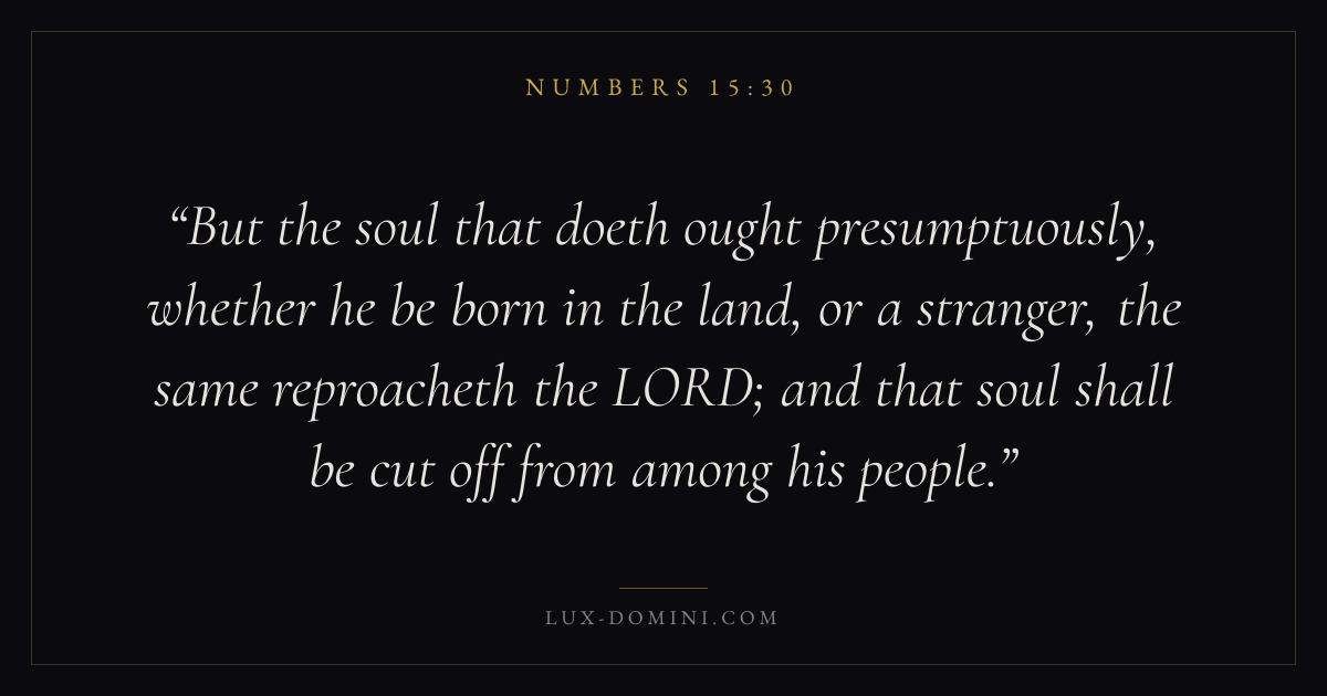 But the soul that doeth ought presumptuously, whether he be born in the land, or a stranger, the same reproacheth the LORD; and that soul shall be cut off from among his people.