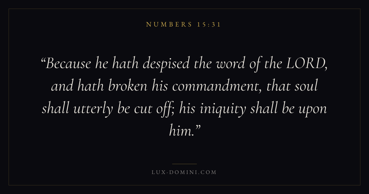 Because he hath despised the word of the LORD, and hath broken his commandment, that soul shall utterly be cut off; his iniquity shall be upon him.