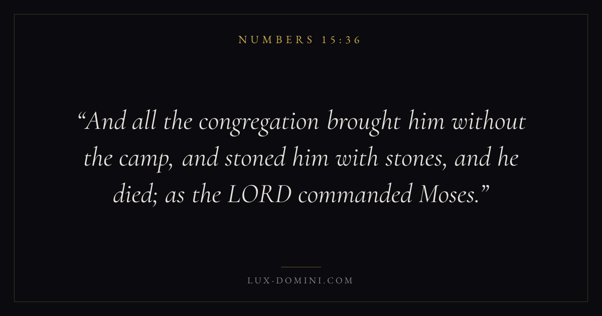 And all the congregation brought him without the camp, and stoned him with stones, and he died; as the LORD commanded Moses.