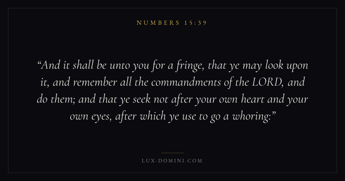 And it shall be unto you for a fringe, that ye may look upon it, and remember all the commandments of the LORD, and do them; and that ye seek not after your own heart and your own eyes, after which ye use to go a whoring: