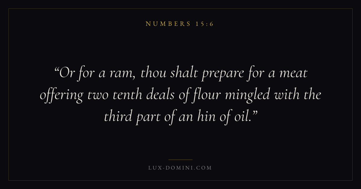 Or for a ram, thou shalt prepare for a meat offering two tenth deals of flour mingled with the third part of an hin of oil.