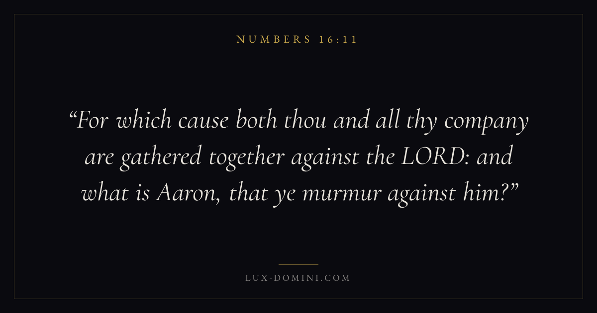 For which cause both thou and all thy company are gathered together against the LORD: and what is Aaron, that ye murmur against him?