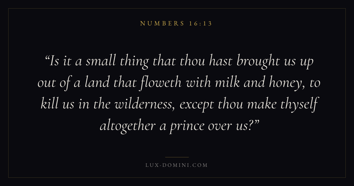 Is it a small thing that thou hast brought us up out of a land that floweth with milk and honey, to kill us in the wilderness, except thou make thyself altogether a prince over us?