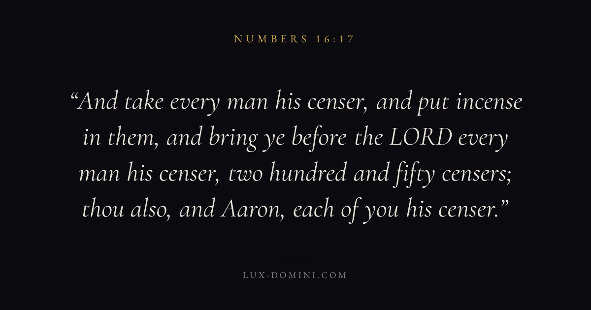 And take every man his censer, and put incense in them, and bring ye before the LORD every man his censer, two hundred and fifty censers; thou also, and Aaron, each of you his censer.