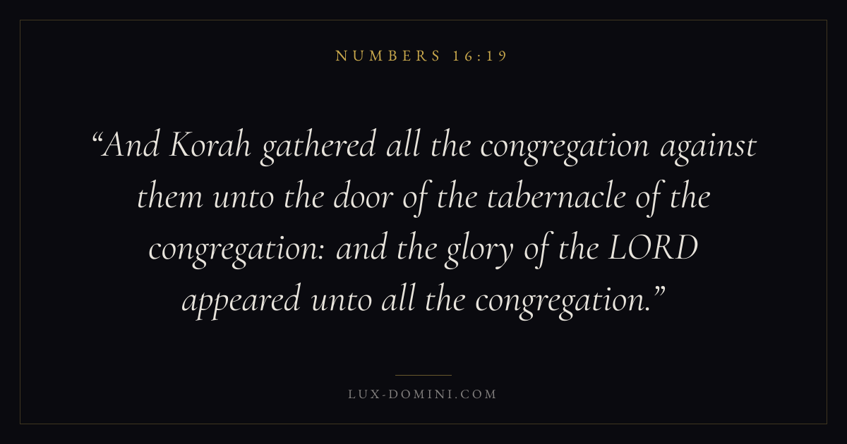 And Korah gathered all the congregation against them unto the door of the tabernacle of the congregation: and the glory of the LORD appeared unto all the congregation.