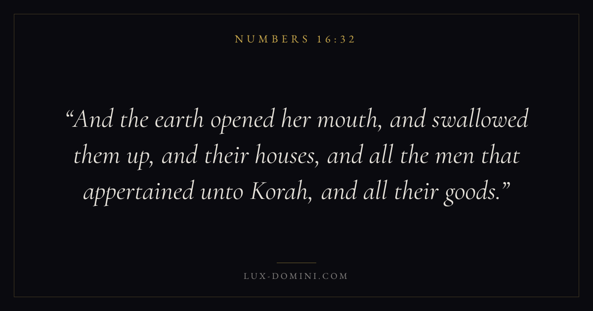 And the earth opened her mouth, and swallowed them up, and their houses, and all the men that appertained unto Korah, and all their goods.