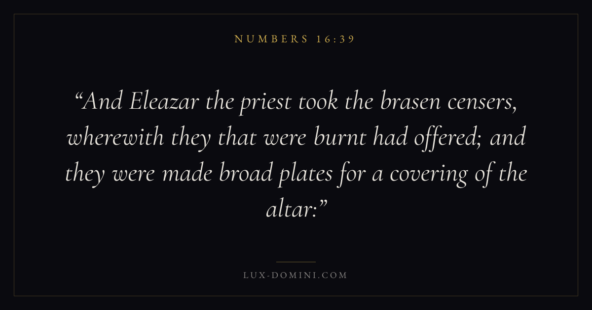 And Eleazar the priest took the brasen censers, wherewith they that were burnt had offered; and they were made broad plates for a covering of the altar: