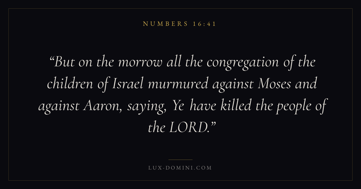 But on the morrow all the congregation of the children of Israel murmured against Moses and against Aaron, saying, Ye have killed the people of the LORD.