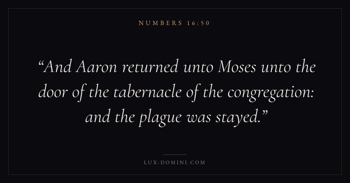 And Aaron returned unto Moses unto the door of the tabernacle of the congregation: and the plague was stayed.