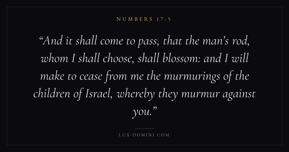 And it shall come to pass, that the man’s rod, whom I shall choose, shall blossom: and I will make to cease from me the murmurings of the children of Israel, whereby they murmur against you.