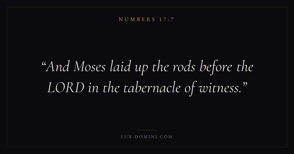 And Moses laid up the rods before the LORD in the tabernacle of witness.