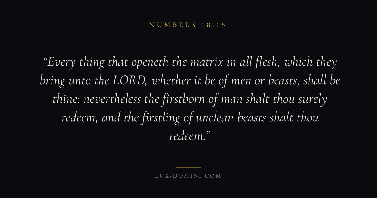 Every thing that openeth the matrix in all flesh, which they bring unto the LORD, whether it be of men or beasts, shall be thine: nevertheless the firstborn of man shalt thou surely redeem, and the firstling of unclean beasts shalt thou redeem.