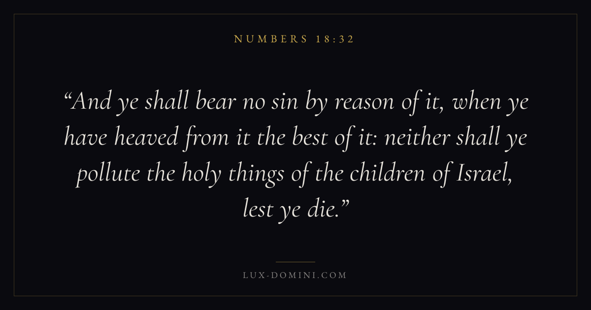 And ye shall bear no sin by reason of it, when ye have heaved from it the best of it: neither shall ye pollute the holy things of the children of Israel, lest ye die.