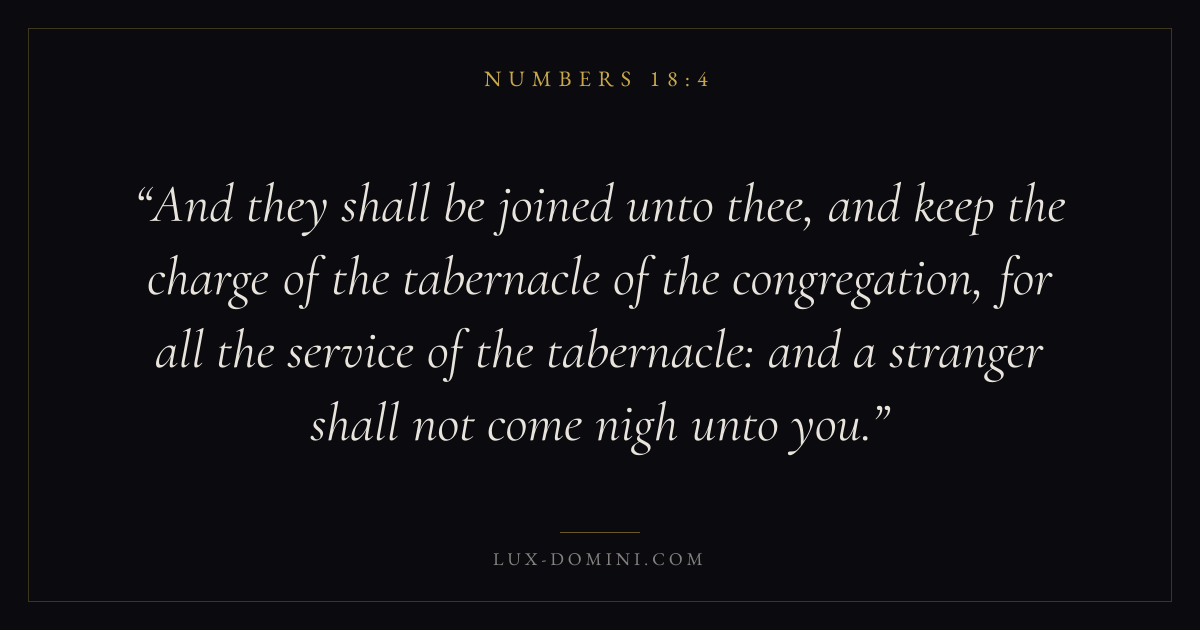 And they shall be joined unto thee, and keep the charge of the tabernacle of the congregation, for all the service of the tabernacle: and a stranger shall not come nigh unto you.