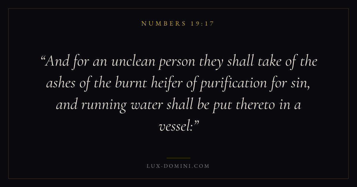 And for an unclean person they shall take of the ashes of the burnt heifer of purification for sin, and running water shall be put thereto in a vessel: