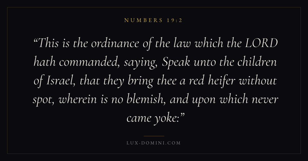 This is the ordinance of the law which the LORD hath commanded, saying, Speak unto the children of Israel, that they bring thee a red heifer without spot, wherein is no blemish, and upon which never came yoke: