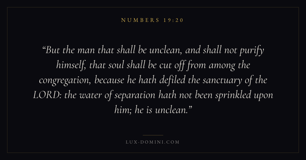 But the man that shall be unclean, and shall not purify himself, that soul shall be cut off from among the congregation, because he hath defiled the sanctuary of the LORD: the water of separation hath not been sprinkled upon him; he is unclean.