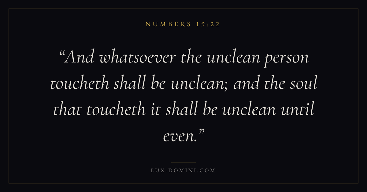 And whatsoever the unclean person toucheth shall be unclean; and the soul that toucheth it shall be unclean until even.