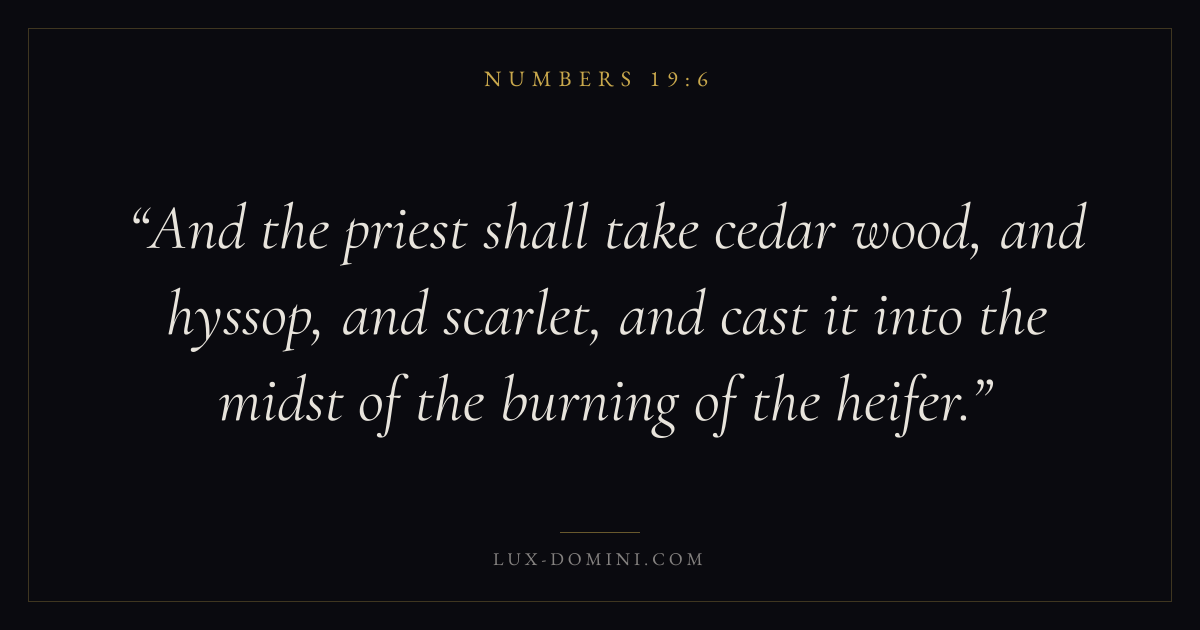 And the priest shall take cedar wood, and hyssop, and scarlet, and cast it into the midst of the burning of the heifer.