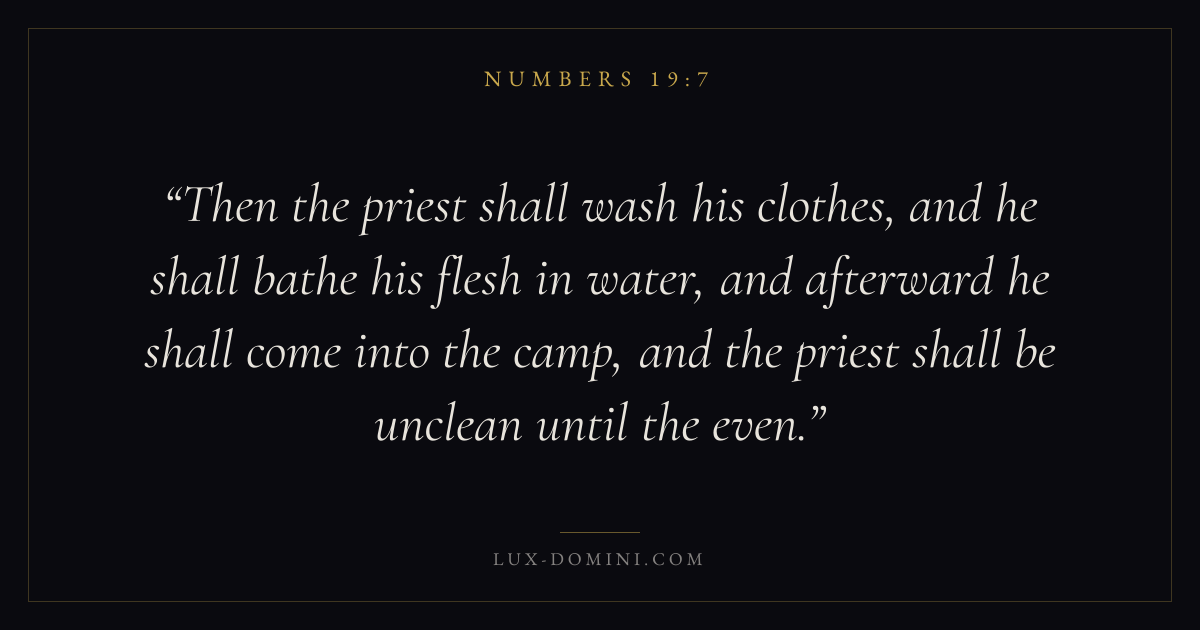 Then the priest shall wash his clothes, and he shall bathe his flesh in water, and afterward he shall come into the camp, and the priest shall be unclean until the even.