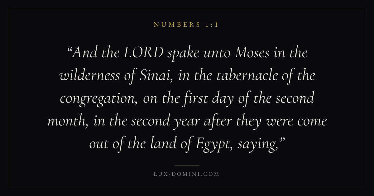 And the LORD spake unto Moses in the wilderness of Sinai, in the tabernacle of the congregation, on the first day of the second month, in the second year after they were come out of the land of Egypt, saying,