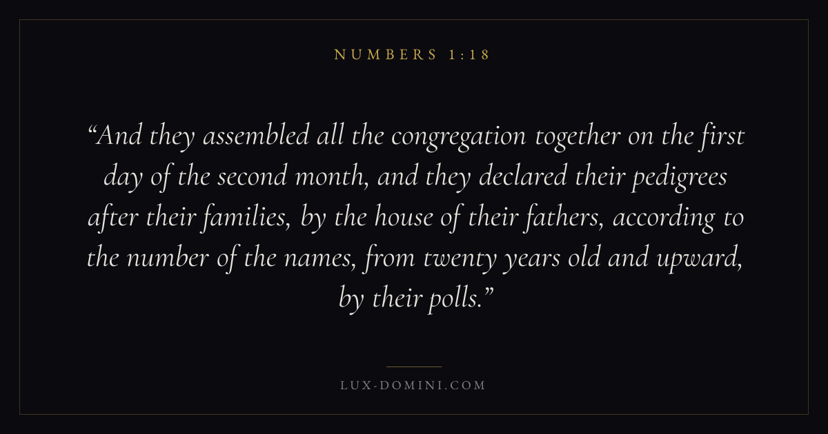 And they assembled all the congregation together on the first day of the second month, and they declared their pedigrees after their families, by the house of their fathers, according to the number of the names, from twenty years old and upward, by their polls.