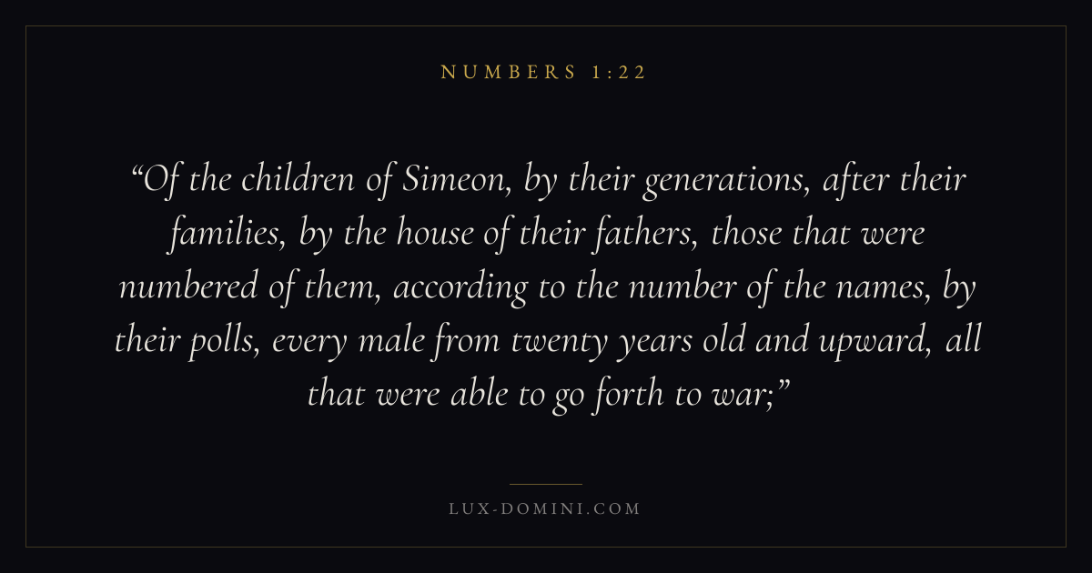 Of the children of Simeon, by their generations, after their families, by the house of their fathers, those that were numbered of them, according to the number of the names, by their polls, every male from twenty years old and upward, all that were able to go forth to war;