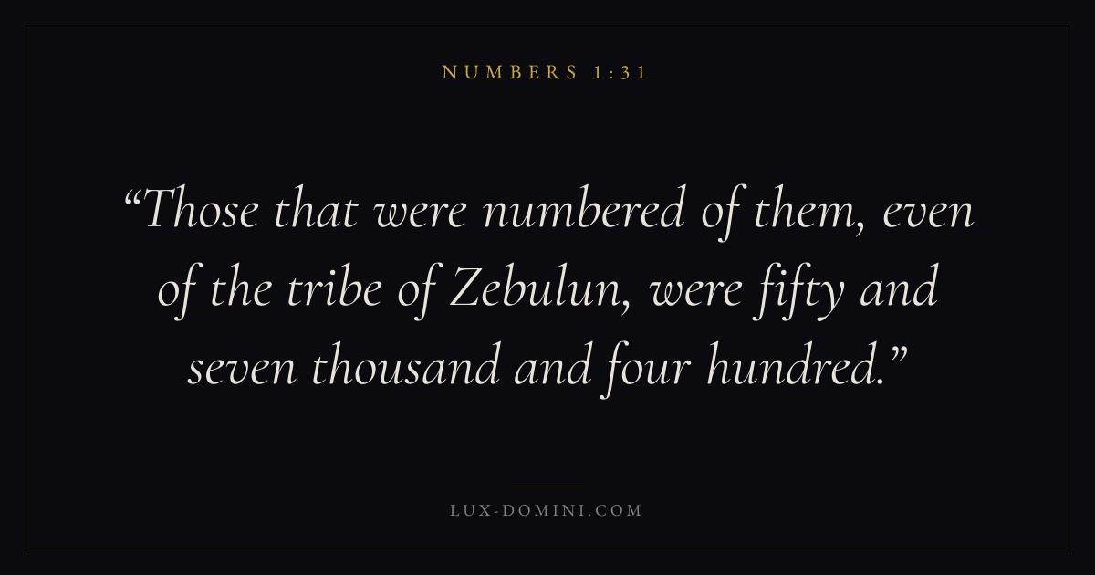 Those that were numbered of them, even of the tribe of Zebulun, were fifty and seven thousand and four hundred.