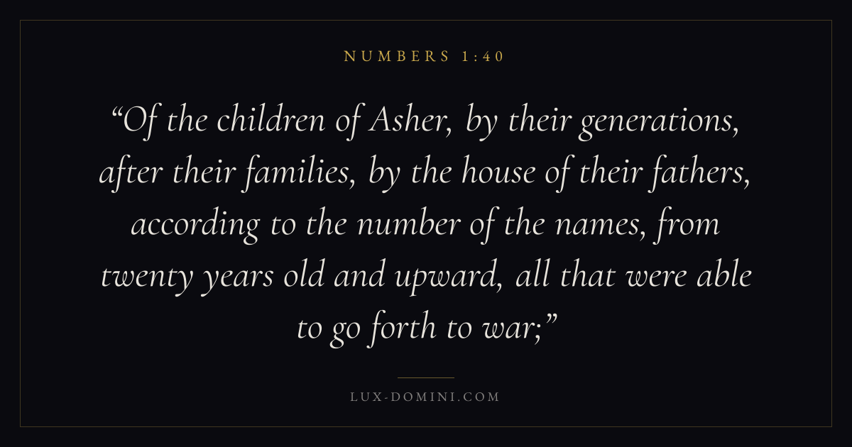 Of the children of Asher, by their generations, after their families, by the house of their fathers, according to the number of the names, from twenty years old and upward, all that were able to go forth to war;