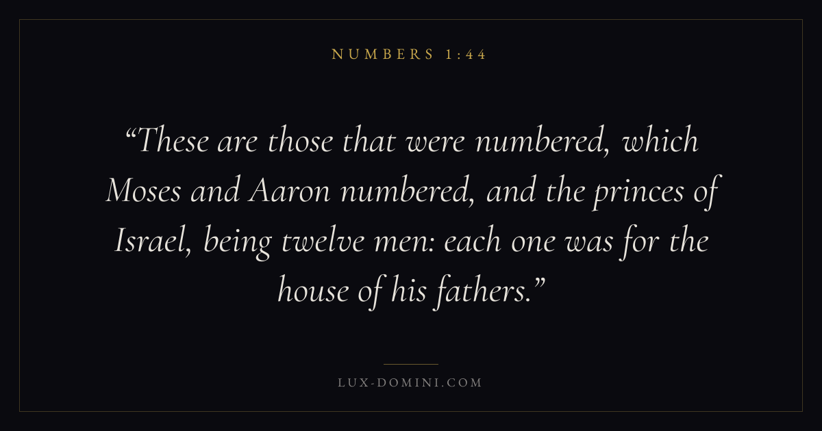 These are those that were numbered, which Moses and Aaron numbered, and the princes of Israel, being twelve men: each one was for the house of his fathers.