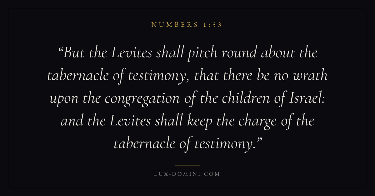 But the Levites shall pitch round about the tabernacle of testimony, that there be no wrath upon the congregation of the children of Israel: and the Levites shall keep the charge of the tabernacle of testimony.