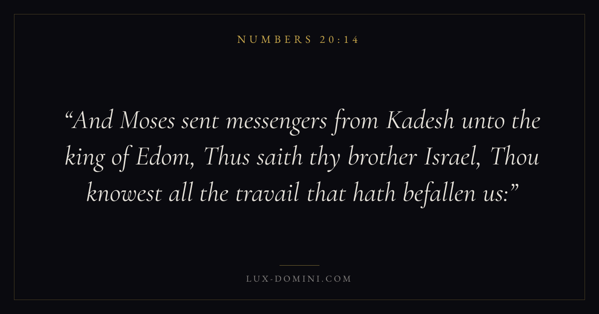 And Moses sent messengers from Kadesh unto the king of Edom, Thus saith thy brother Israel, Thou knowest all the travail that hath befallen us: